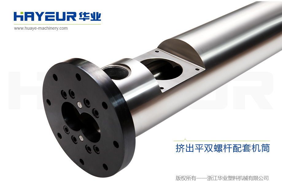 B、機(jī)筒選用42CrMo材質(zhì),經(jīng)調(diào)質(zhì)HB290-320,內(nèi)鑲德國(guó)HPT1粉末合金套。合金厚度大于7毫米,硬度HRC58-62,機(jī)筒外殼可循環(huán)使用,磨損后可更換內(nèi)部合金套。